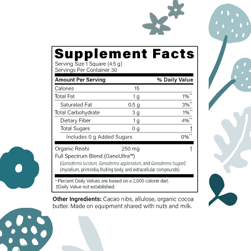 Fx Chocolate Defend is a synergistic blend of dark chocolate and mushroom polysaccharides for enhanced cellular protection that supports energy and immune health. Fx Defend contains 250 mg of GanoUltra: three individually extracted strains of full-spectrum organic reishi mushrooms for sustained energy and mind- and body-balancing properties. GanoUltra contains beta-glucans, one of the most abundant forms of polysaccharides found inside the cell walls of fungi that exhibit benefits to both the innate and adaptive branches of the immune system. Fx Chocolate contains zero grams of sugar and is sweetened with allulose, a sweetening agent that is found in jackfruit, figs, and raisins, with no bitterness or unpleasant aftertaste.