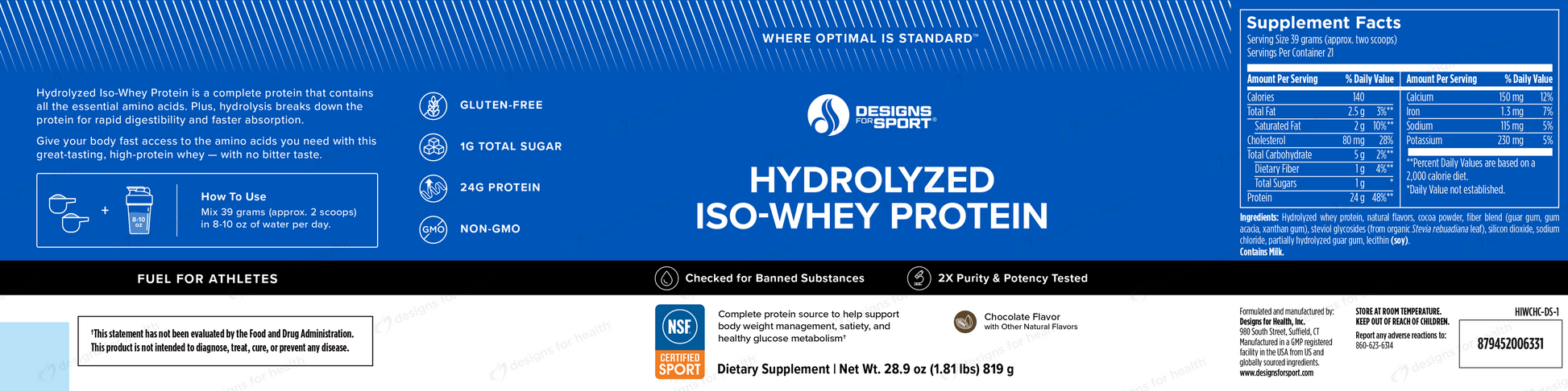 Hydrolyzed ISO-Whey Protein Chocolate by Designs for Sport
